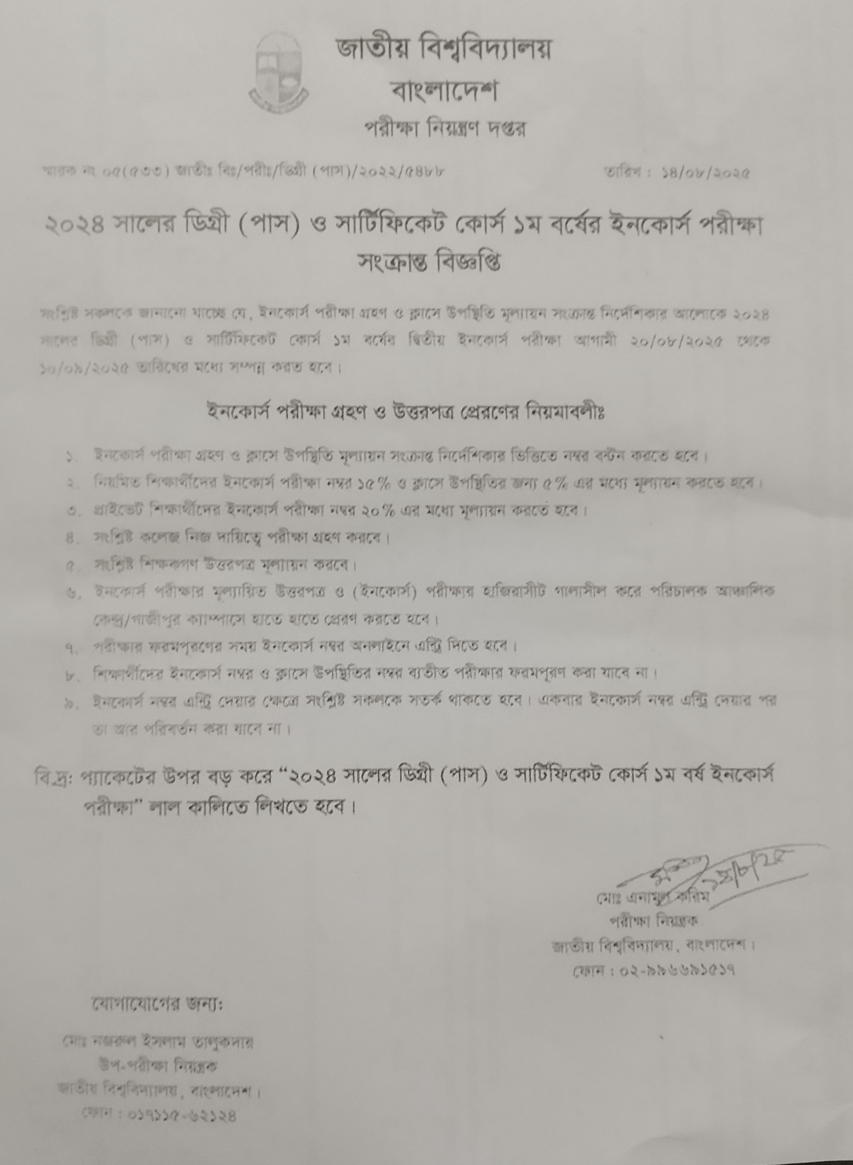 14.Aug.2025 ২০২৪ সালের ডিগ্রি (পাস) ও সাটিফিকেট কোর্স ১ম বর্ষের ইনকোর্স পরীক্ষা সংক্রান্ত বিজ্ঞপ্তি View Download